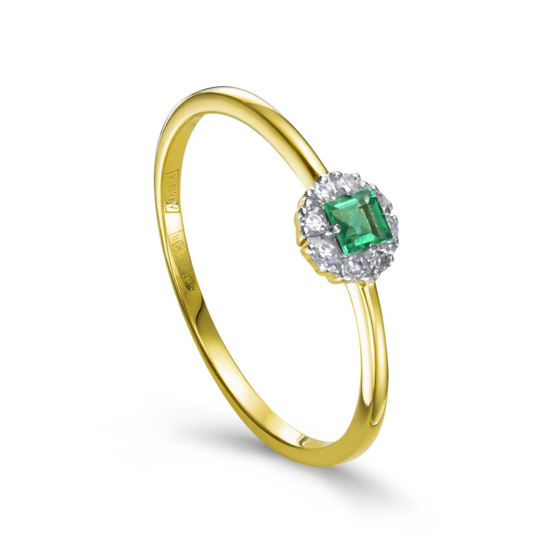 Кольцо из жёлтого золота с изумрудом и бриллиантами
