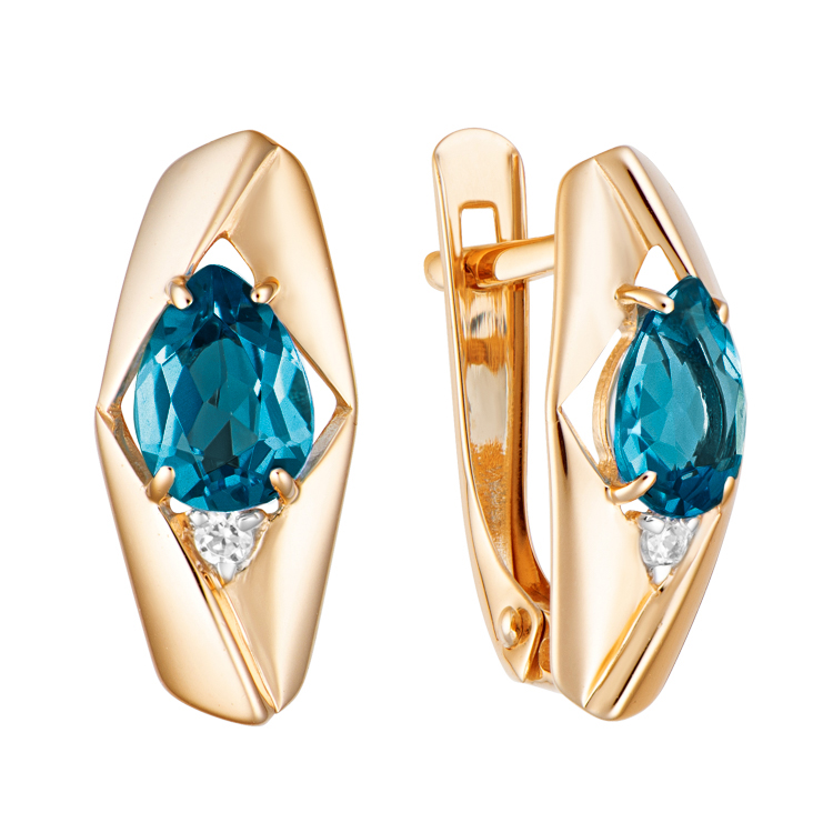 Серьги из красного золота с фианитами и топазами