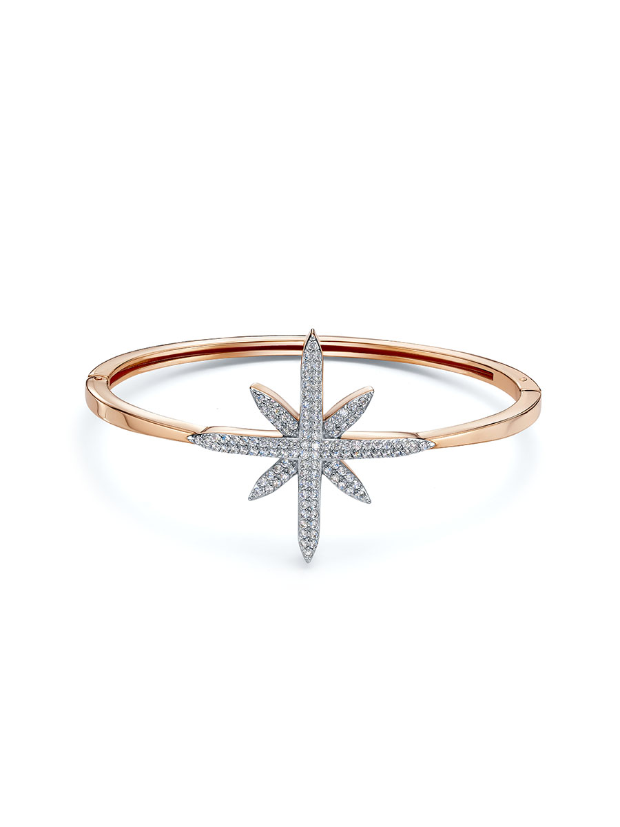 Браслет жесткий из красного золота с фианитами