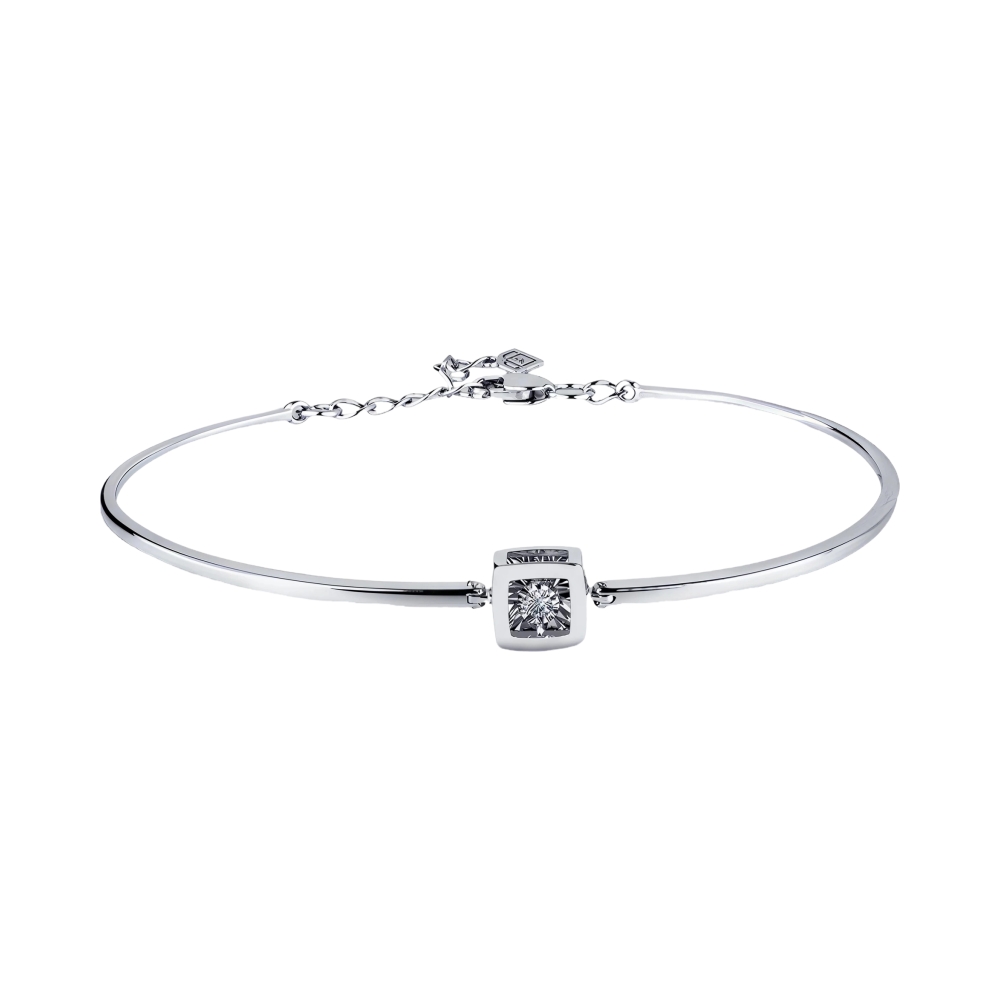 Браслет жесткий из белого золота с бриллиантом