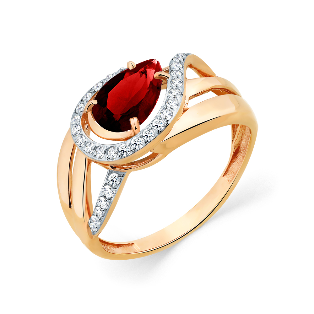 [NAME] => Кольцо из красного золота с гранатом и фианитами