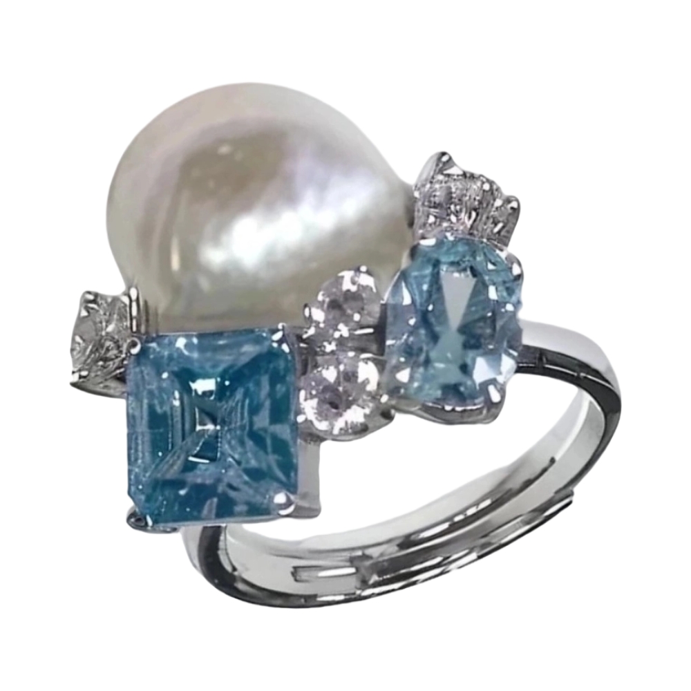 Кольцо из серебра со жемчугом и цирконами