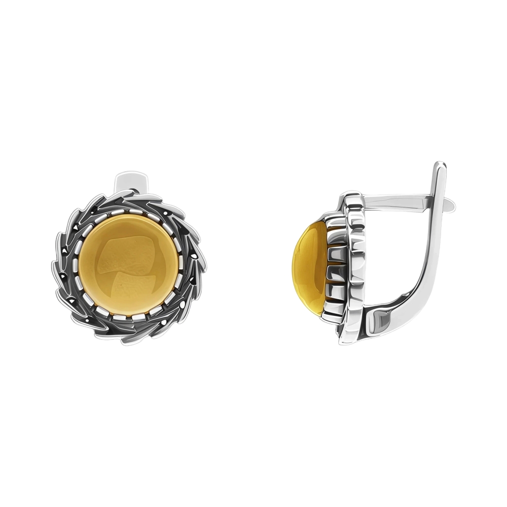 Серьги из серебра с обсидианом 153129