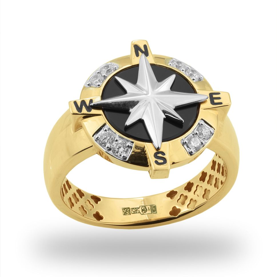 Мужская печатка из желтого золота с ониксом и фианитами 158734